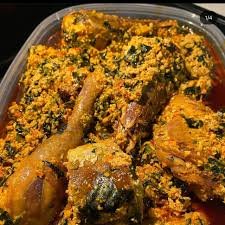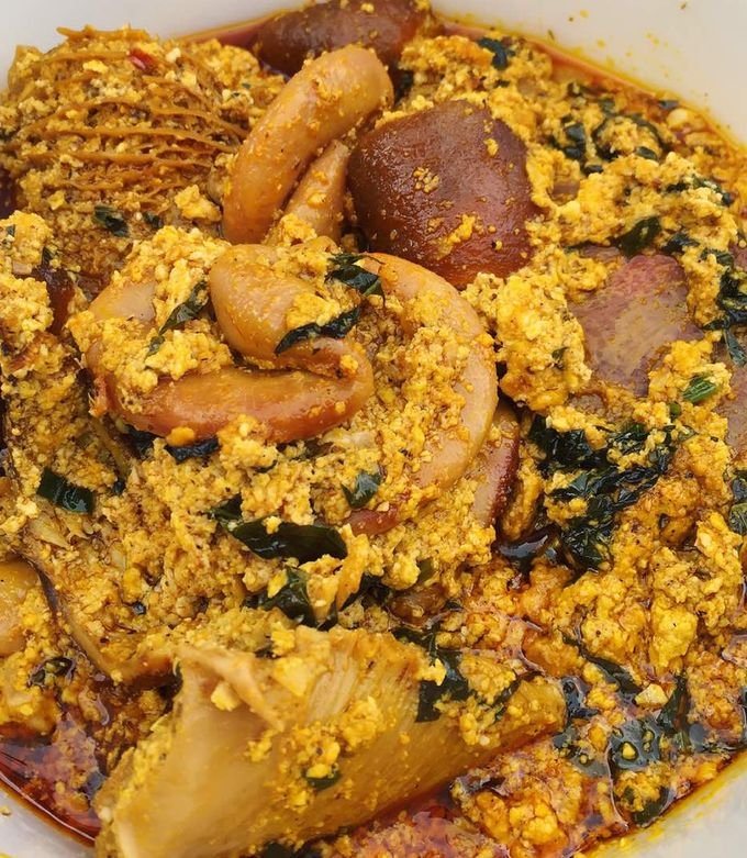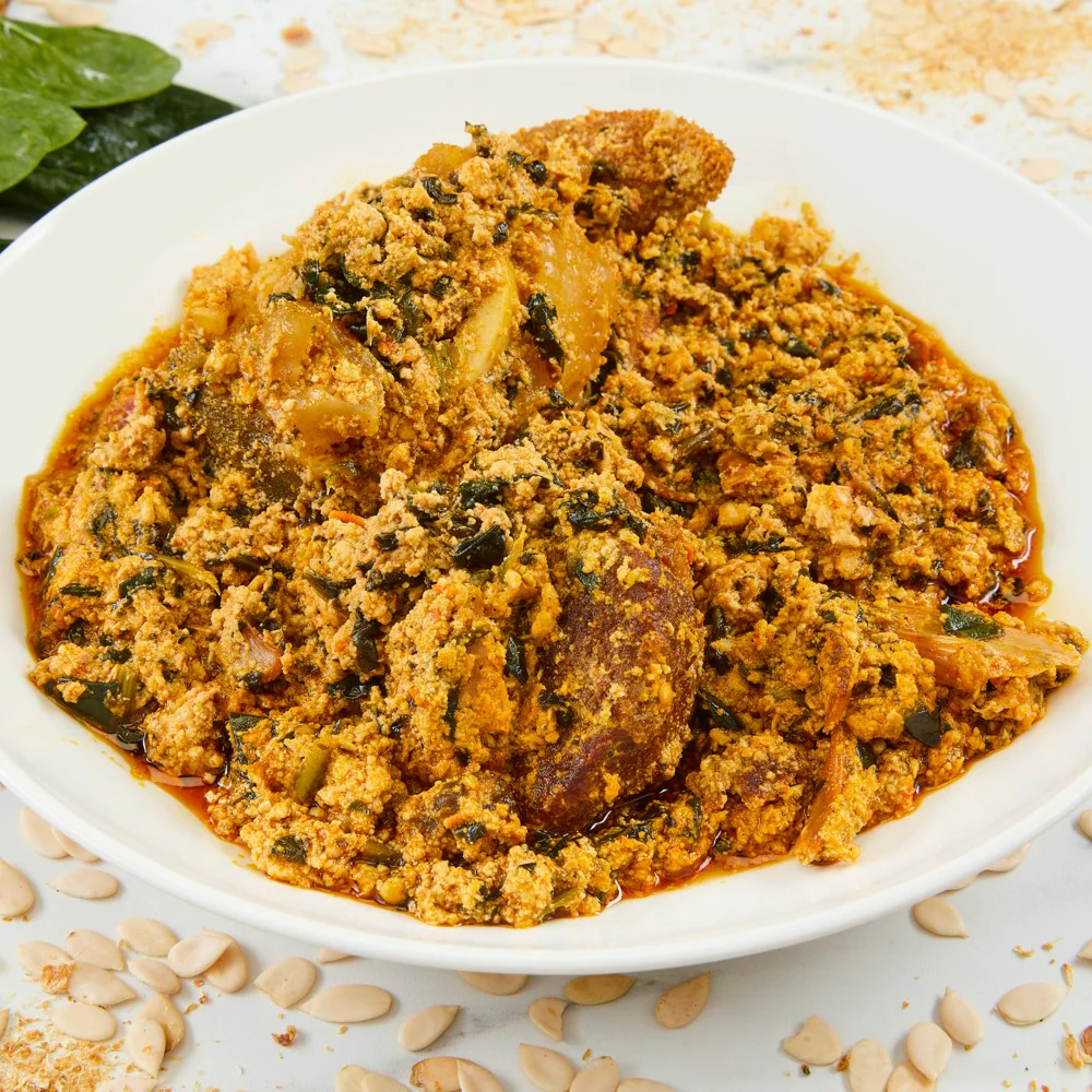 A rich and hearty West African soup made from ground melon seeds, slow-cooked with palm oil, vegetables, and spices. Packed with tender assorted meats, including beef, tripe, and cow skin (kpomo). Best enjoyed with pounded yam or eba for a deeply satisfying, traditional experience.